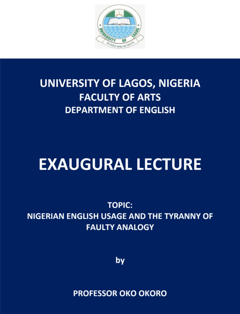 I am delighted to announce the successful publication of Volume 26, 2020 of our esteemed journal, Lagos Notes and Records. This current edition is made up of thirteen well-researched articles across the various disciplines of the Humanities and Social Sciences namely History, Philosophy, Creative Arts, Language Studies, Literature, Communication Studies, and Linguistics.